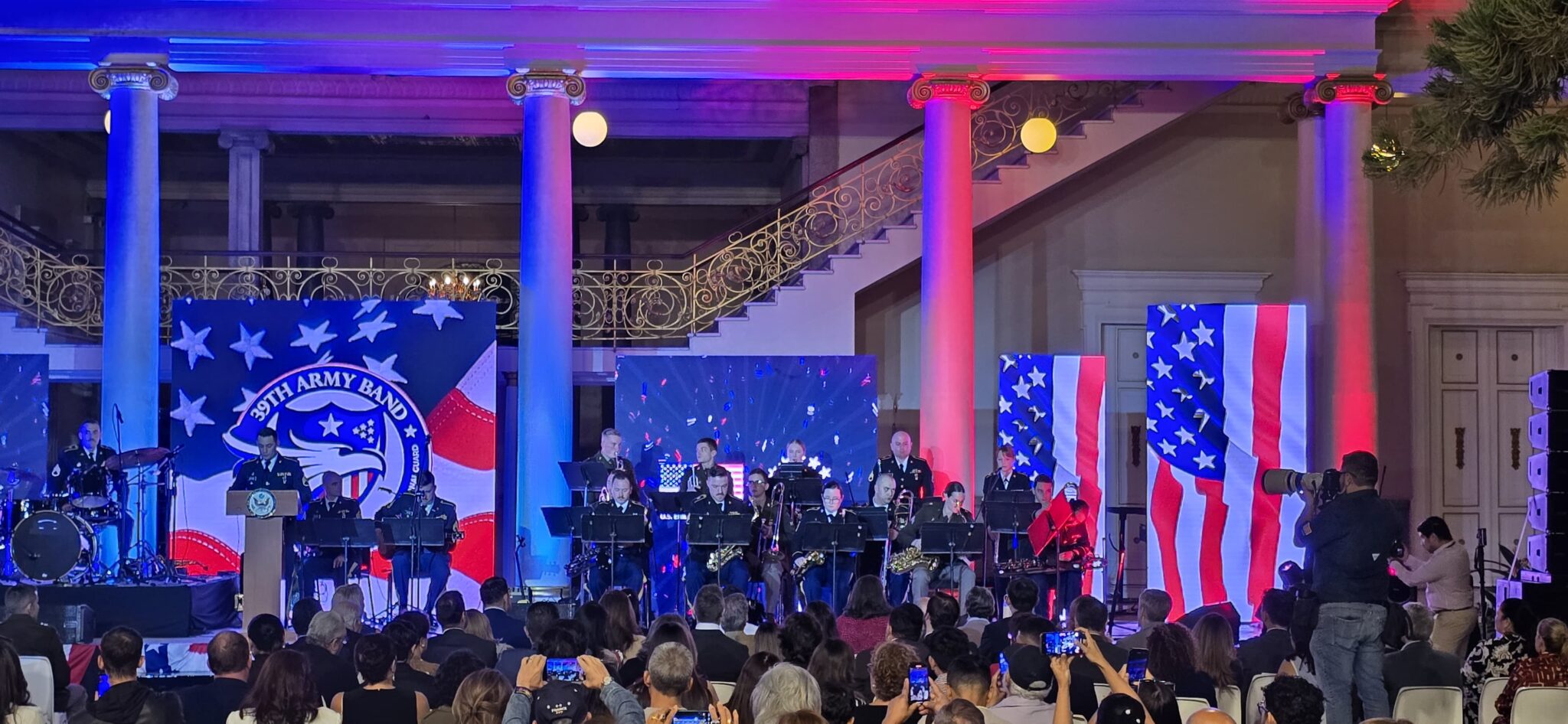 La Embajada de los Estados Unidos inauguró las celebraciones del 250° aniversario de la independencia estadounidense con el concierto “Sonidos de una Nación: 250 Años de EE.UU. en la Música en el icónico Palacio Nacional de El Salvador.” La 39° Banda Militar de la Guardia Nacional de New Hampshire deleitó el público con un repertorio … Sigue leyendo Los salvadoreños disfrutaron al ritmo del 250° aniversario de la independencia estadounidense