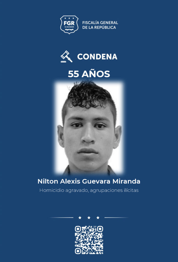«Estos pandilleros del Barrio 18 han sido condenados por los delitos de homicidio agravado y agrupaciones ilícitas, cometidos entre el 2011 y 2014, en Apopa y Nejapa, San Salvador Oeste; y en Guazapa, San Salvador Norte», mencionó la Fiscalía.