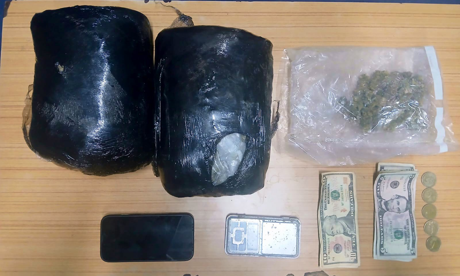 Durante el procedimiento se le incautaron dos porciones grandes de marihuana, una porción pequeña adicional, dinero en efectivo, una báscula digital y un teléfono celular.