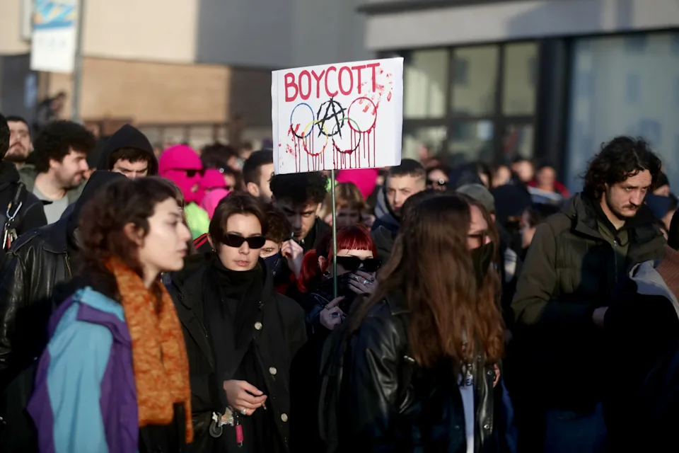La protesta se produce solo un día después de la apertura de los 25.º Juegos Olímpicos de Invierno en las ciudades de Milán y Cortina con la presencia de deportistas de 93 países de todo el mundo.