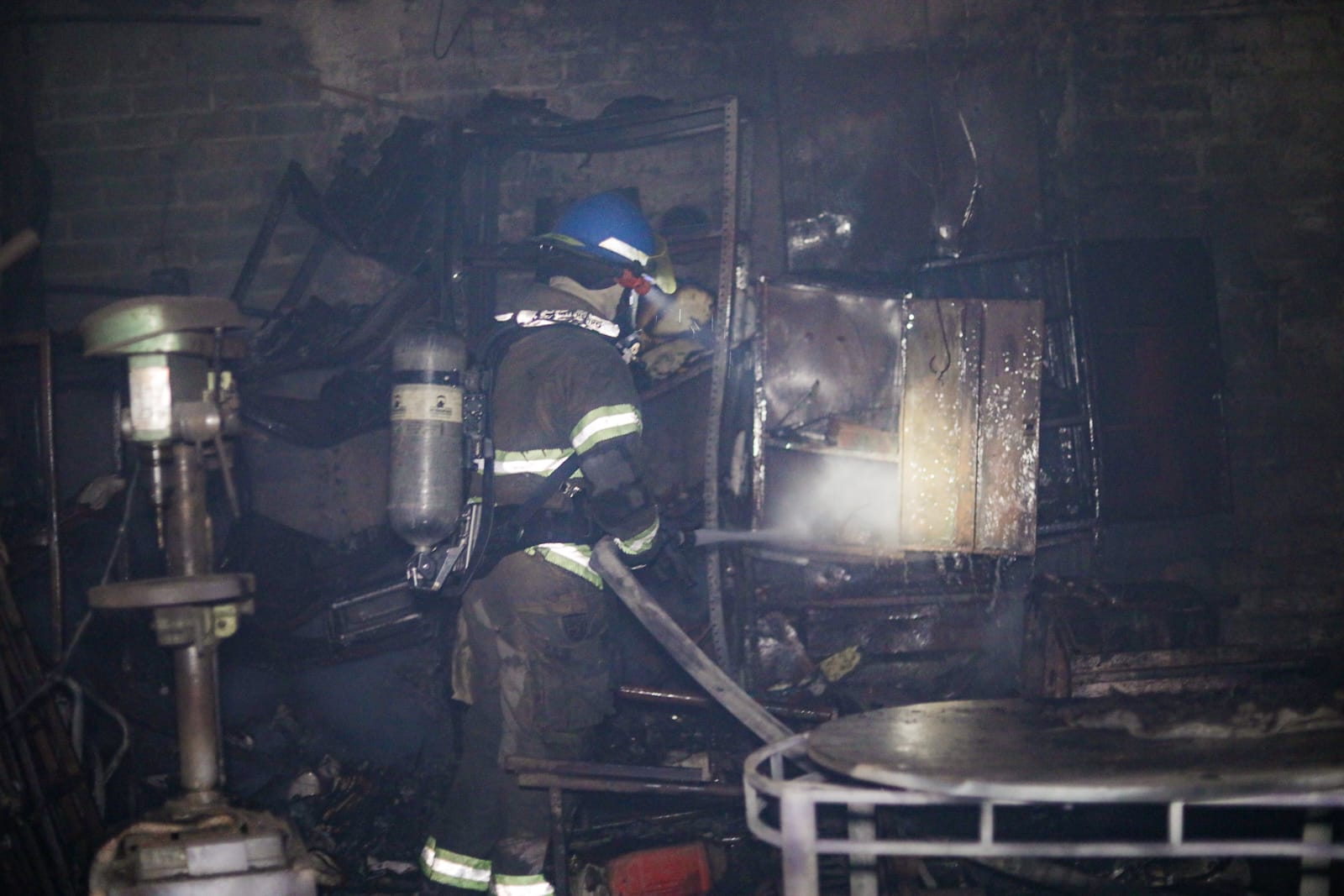 Esta madrugada, elementos del Cuerpo de Bomberos de El Salvador atendieron un incendio estructural registrado en un taller de estructuras metálicas ubicado en la colonia Monpegón, en San Salvador.
