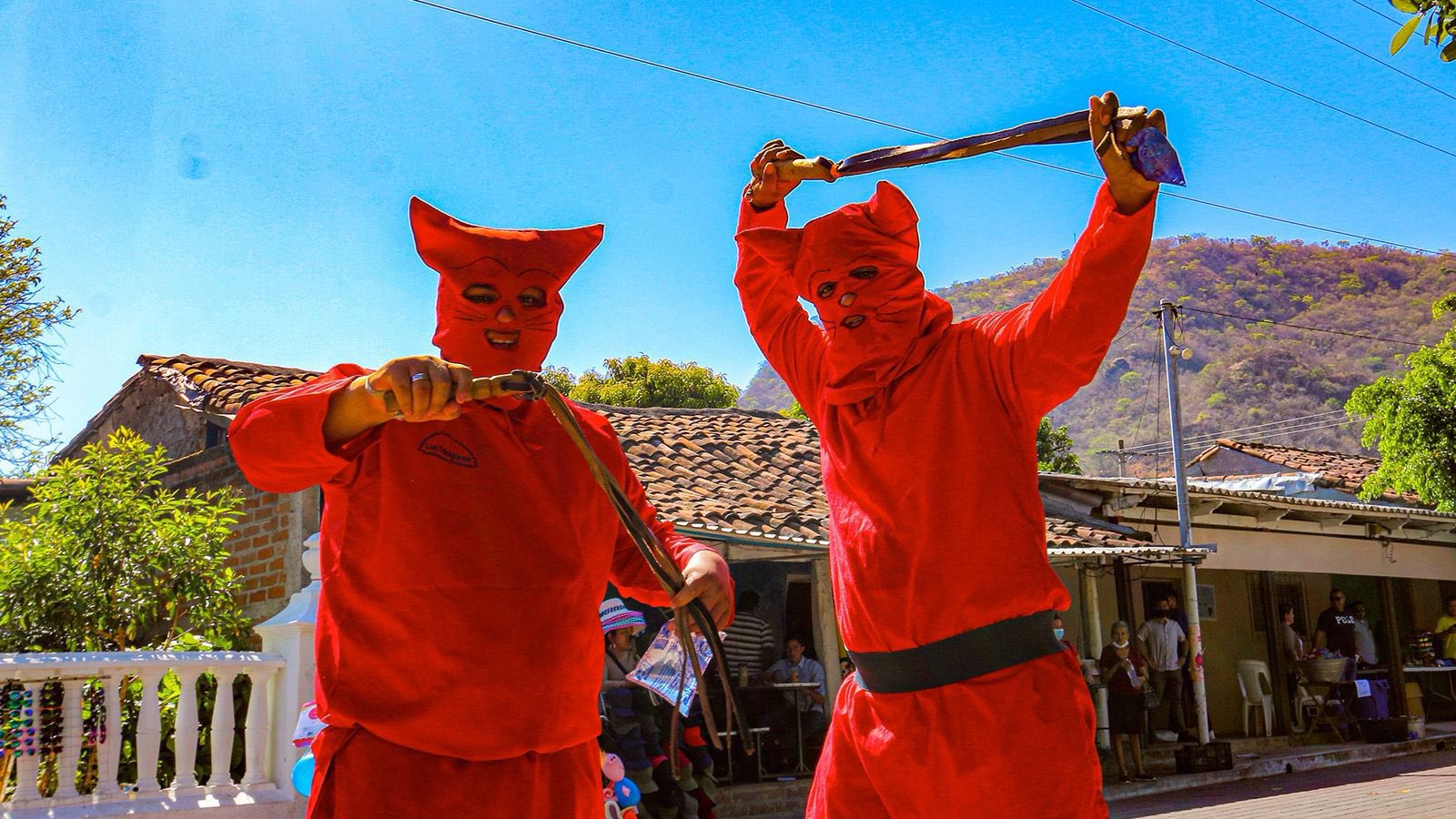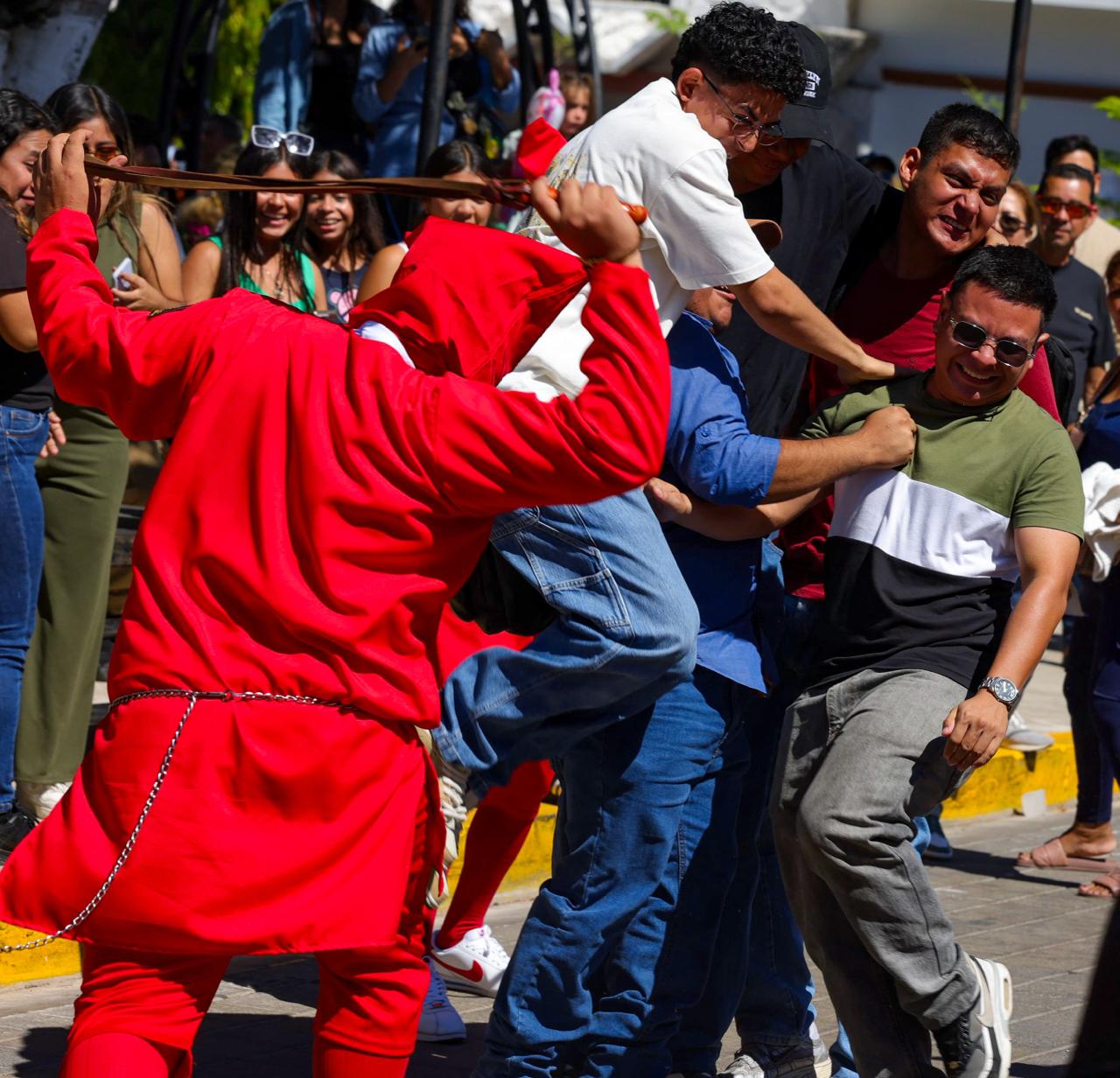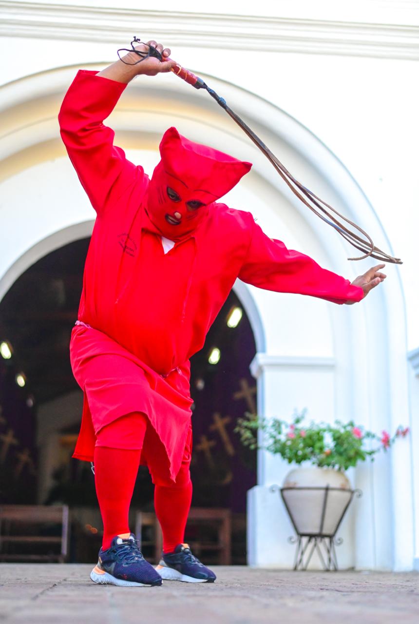 Esta tradición reúne a decenas de participantes que personifican a estos personajes con trajes rojos, máscaras y látigos, recorriendo las calles del municipio en una colorida y simbólica representación.
