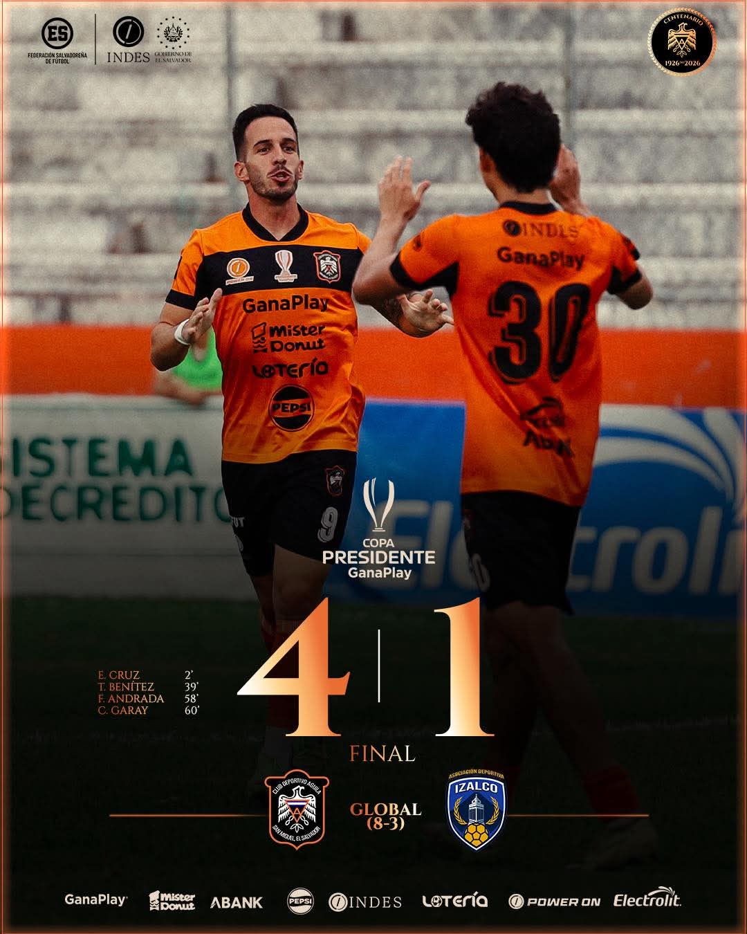 Club Deportivo Águila selló su clasificación a los cuartos de final de la Copa Presidente 2026 tras imponerse 4-1 a AD Izalco en el partido de vuelta de los octavos de final, disputado en el Estadio Juan Francisco Barraza.