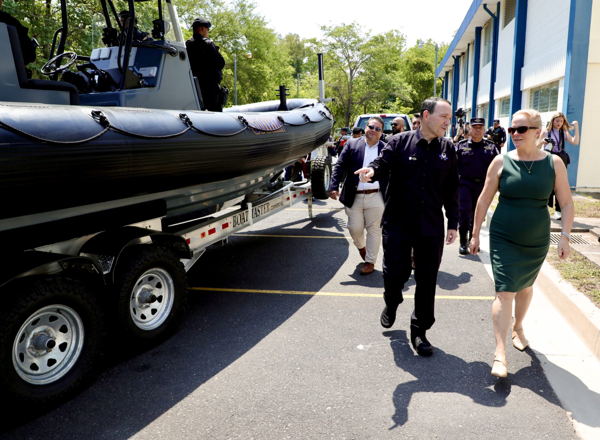 “Hoy entregamos tres embarcaciones especializadas al equipo STORM, las cuales fortalecerán su capacidad para patrullar las aguas litorales, detectar e interceptar las rutas marítimas utilizadas por los narcotraficantes y cerrar puntos críticos del tránsito ilícito”, expresó Sra. Naomi Fellows, la Encargada de Negocios de la Embajada de los Estados Unidos.
