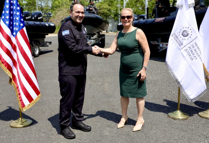 La Embajada de los Estados Unidos, a través de la Oficina de Asuntos Antinarcóticos y Aplicación de la Ley (INL), transfirió tres botes Zodiac, valorados en $1.2 millones, a la Fuerza de Policía Marítima Costera (STORM) de El Salvador para fortalecer los esfuerzos contra el narcotráfico en aguas costeras.