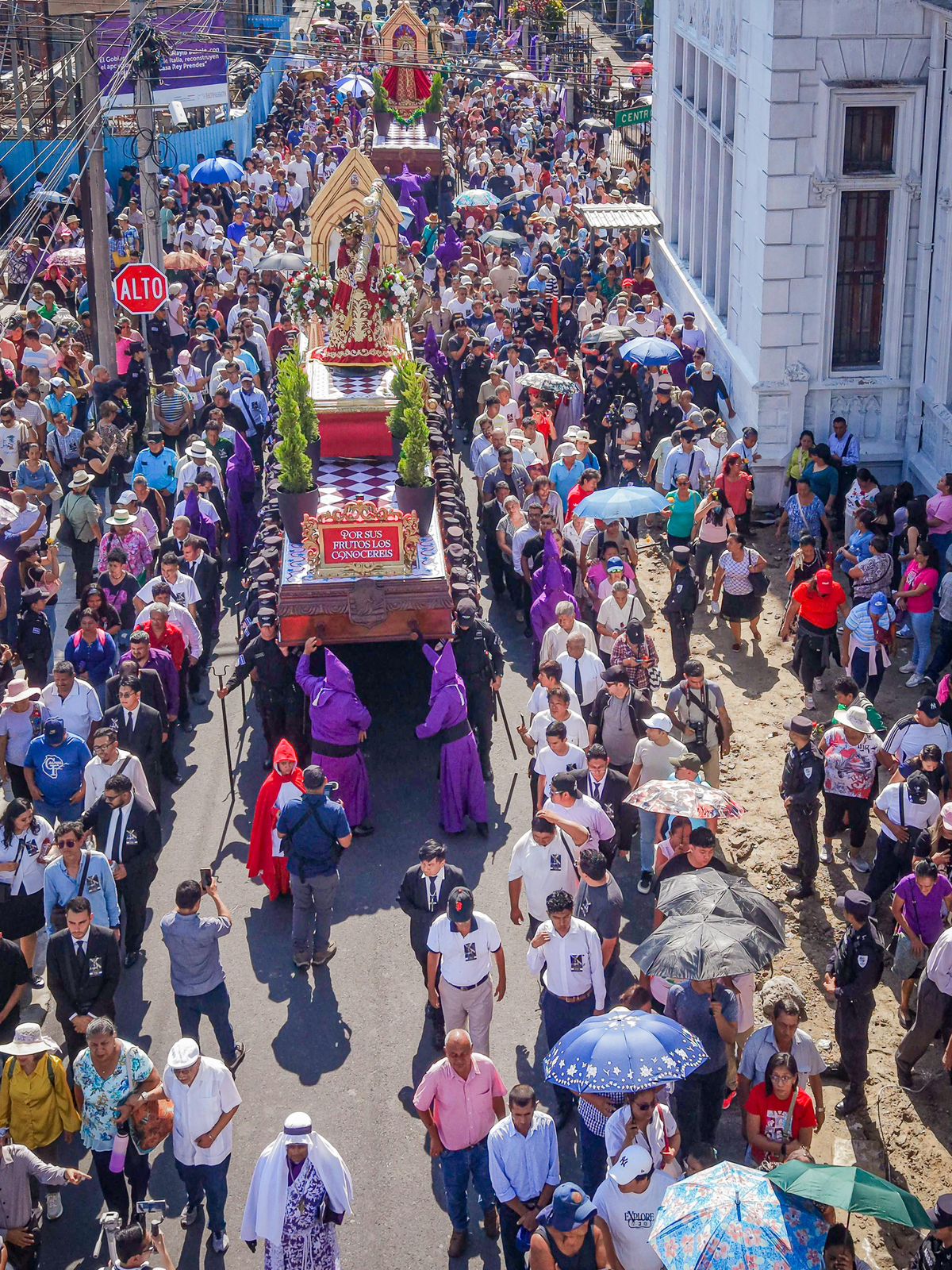 En el Centro Histórico de San Salvador, uno de los puntos más emblemáticos de la jornada, cientos de creyentes participaron en el Santo Viacrucis, que inició desde las ruinas de la iglesia San Esteban y culminó en la parroquia El Calvario, recorriendo la tradicional calle de La Amargura.