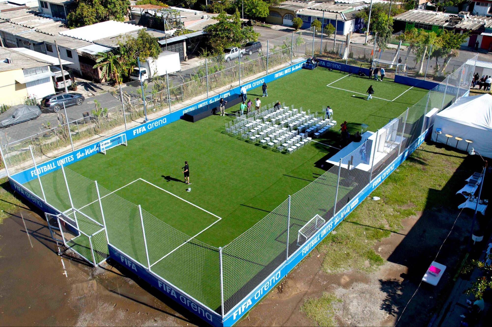 El programa FIFA Arena, impulsado por la FIFA, consiste en la construcción de mini canchas de fútbol dentro de centros educativos, con el objetivo de fomentar el desarrollo deportivo en la niñez y juventud. A nivel global, la iniciativa busca la construcción de 1,000 canchas para el año 2031.