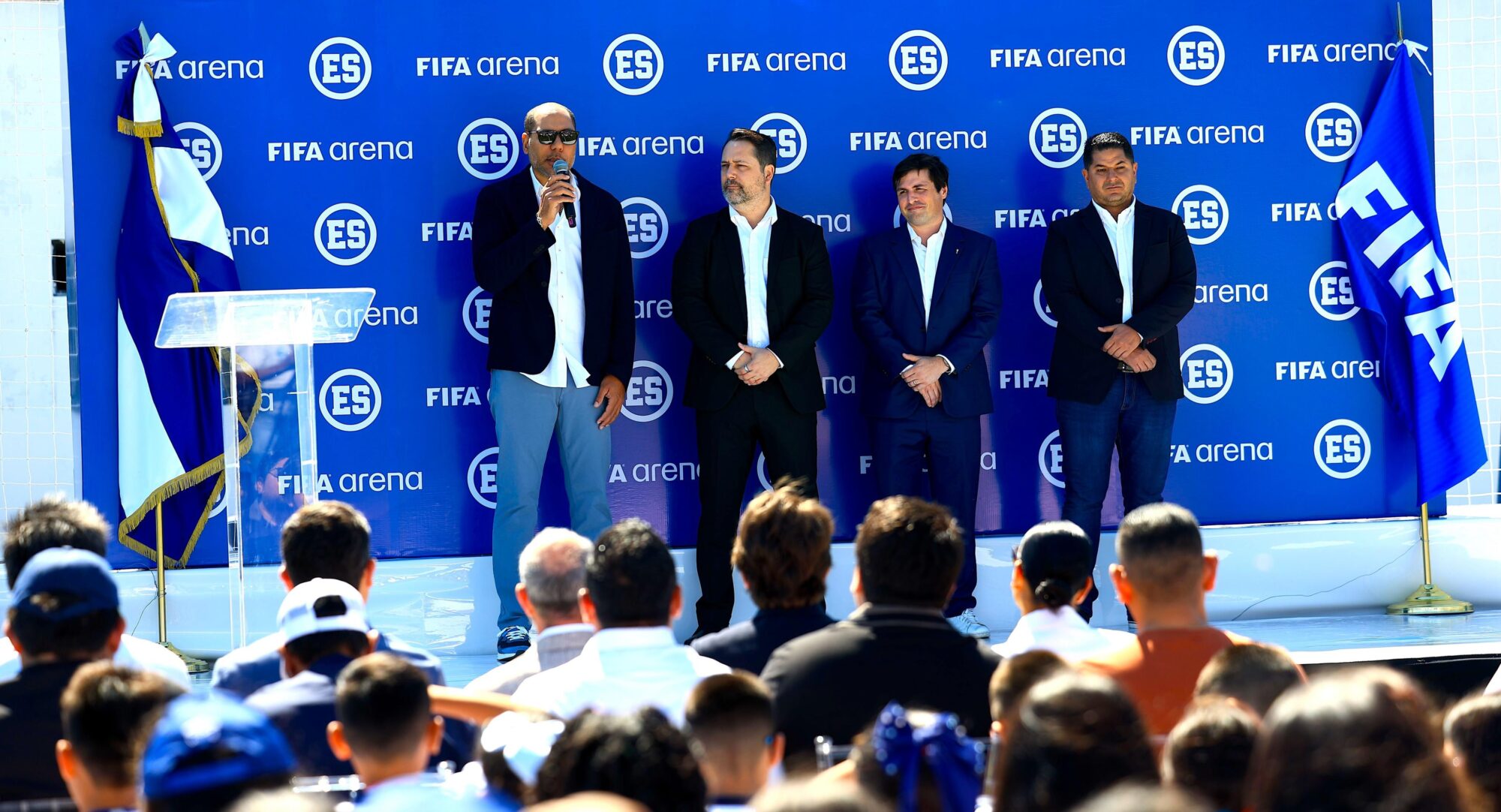 presidente del INDES: “FIFA Arena representa la visión de crear espacios que transformen comunidades a través del deporte. Esta cancha es para ustedes, para que la aprovechen al máximo”.