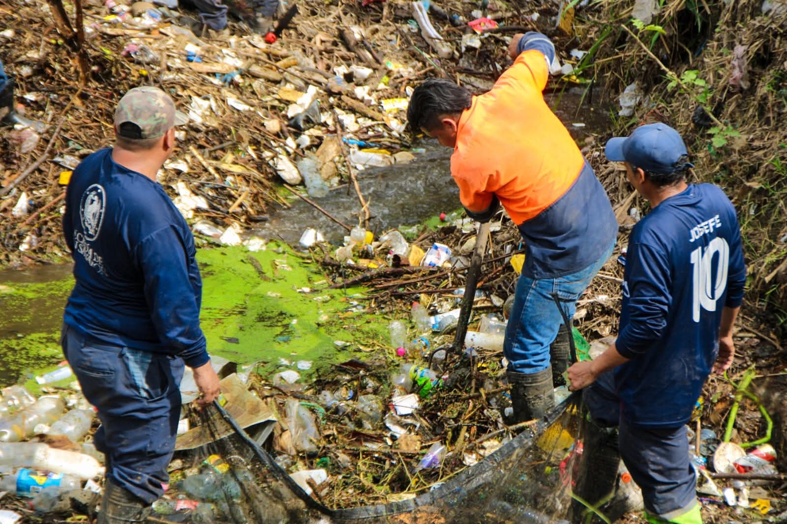 En el operativo participaron 40 trabajadores municipales, incluyendo personal de Protección Civil Municipal y del área de Desechos Sólidos, quienes realizaron la evacuación masiva de plásticos, residuos sólidos y desechos voluminosos acumulados en el cauce.