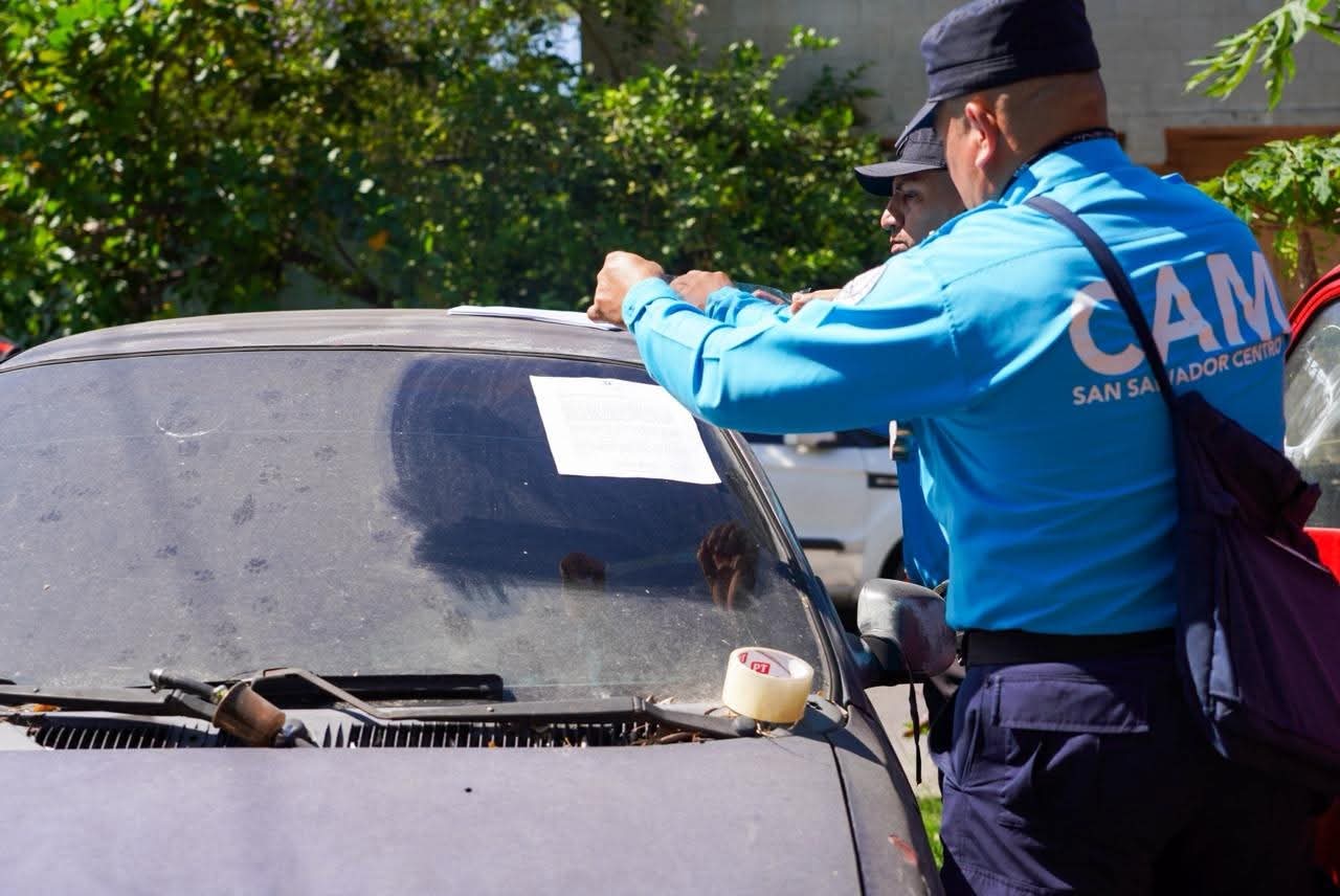 Elementos del CAM San Salvador desarrollaron una jornada de entrega de notificaciones a propietarios de vehículos abandonados en la comunidad Iberia y la urbanización Altos del Bulevar, en la Zona 6 del Distrito Capital.