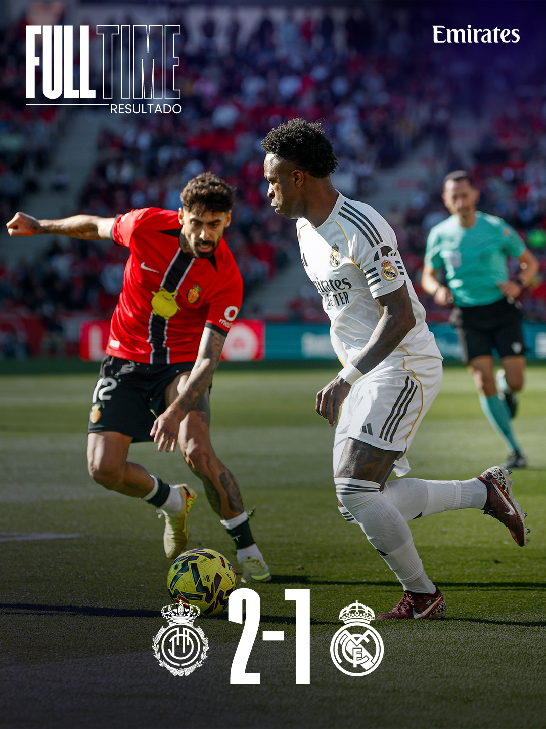 Cuando empató el brasileño Militao a dos minutos para el final del tiempo reglamentario (88′) y podía suponerse que el Real Madrid iría a por la victoria, llegó el tanto del delantero kosovar Vedat Muriqi que dio la victoria definitiva a los insulares (90+1).
