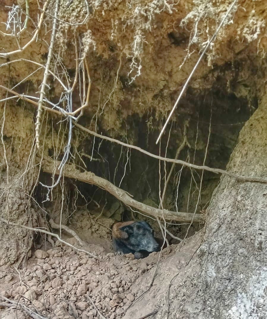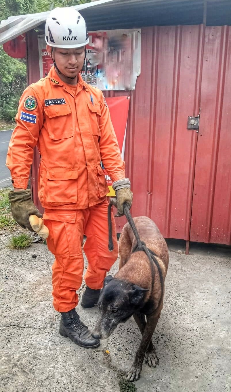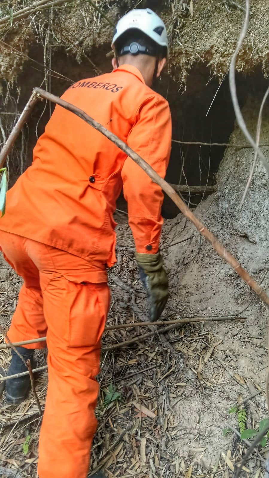 Un canino fue rescatado luego de quedar atrapado en una cavidad en un talud en el kilómetro 11 de la carretera a Panchimalco, en la zona de Planes de Renderos.