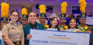 La ministra de Educación, Karla Trigueros, entregó premios en efectivo a las bandas estudiantiles que participaron...