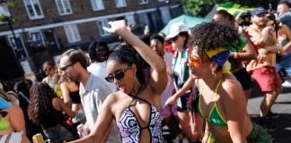 Bandas afrocaribeñas y carrozas en los desfiles del carnaval londinense de...