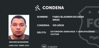 La Fiscalía General de la República (FGR), informó sobre la condena de 105 años de prisión para Fabio Bladimir Escobar Arias, ya...