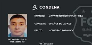 La Fiscalía General de la República (FGR), informó que Darwin Remberto Martínez López, quien por el homicidio de una víctima en Santa...