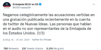 San Salvador, 31 oct (EFE).- La embajada de Estados Unidos negó este domingo "categóricamente" las acusaciones de que su representación diplomática en...