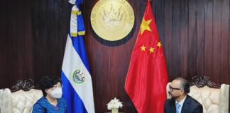 San Salvador, 27 oct (EFE).- La embajadora de China en El Salvador, Ou Jianhong, y el presidente de la Asamblea Legislativa, Ernesto...