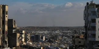 Los escombros y edificios derrumbados en Gaza dificultan la retirada de...