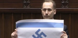 Un diputado polaco mostró en el Parlamento una bandera israelí con...
