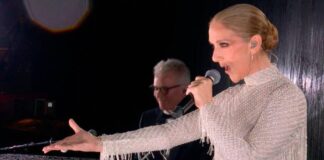 Céline Dion canta en el cierre de la ceremonia de apertura...